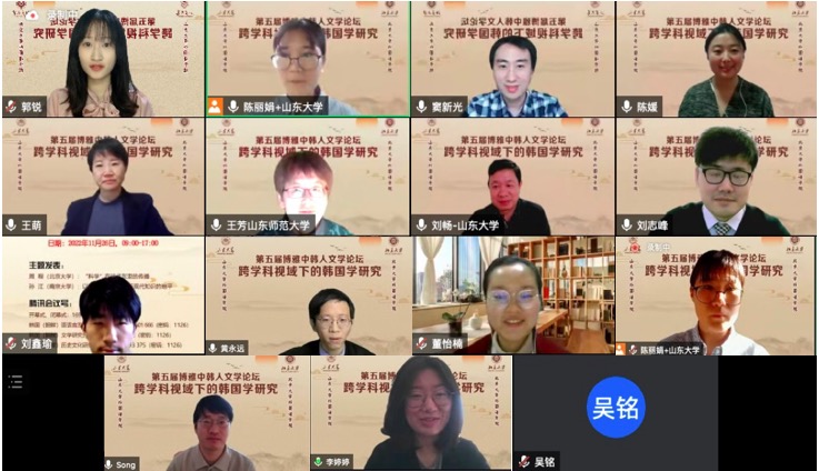 2022年11月26日,由乐动在线朝鲜(韩国)语言文化系、北京大学朝鲜半岛研究中心、山东大学外国语学院韩国语系、山东大学中日韩合作研究中心共同主办的“第五届博雅中韩人文学论坛”于线上举行。来自北京大学、山东大学、南京大学、复旦大学、中山大学、北京外国语大学、上海外国语大学等十六所高校的四十余名专家、学者和博士研究生参会。