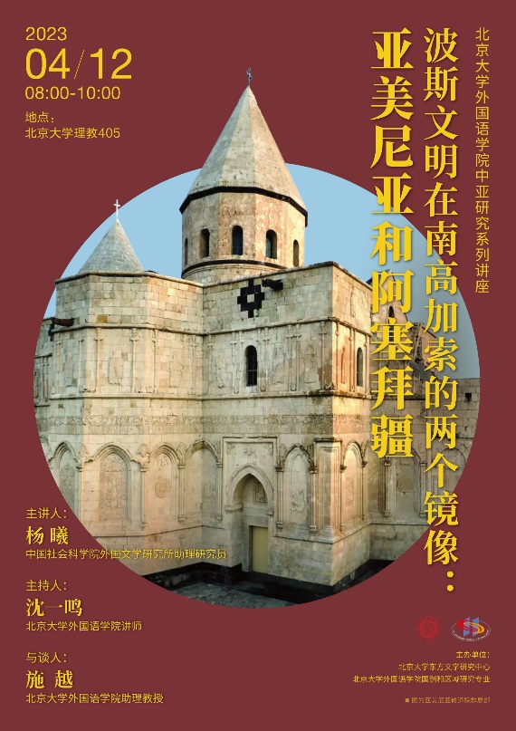 4月19日,乐动在线中亚研究系列讲座再次举行,该系列讲座由教育部人文社科重点研究基地北京大学东方文学研究中心和乐动在线国别和区域研究专业主办。本次讲座以线下形式在理教405教室开讲,主题为“波斯文明在南高加索的两个镜像:亚美尼亚和阿塞拜疆”,讲座邀请中国社会科学院外国文学研究所东方文学研究室杨曦助理研究员作为主讲人,同时邀请乐动在线国别和区域研究专业助理教授施越作为讲座与谈人,讲座由乐动在线西亚系讲师沈一鸣主持。