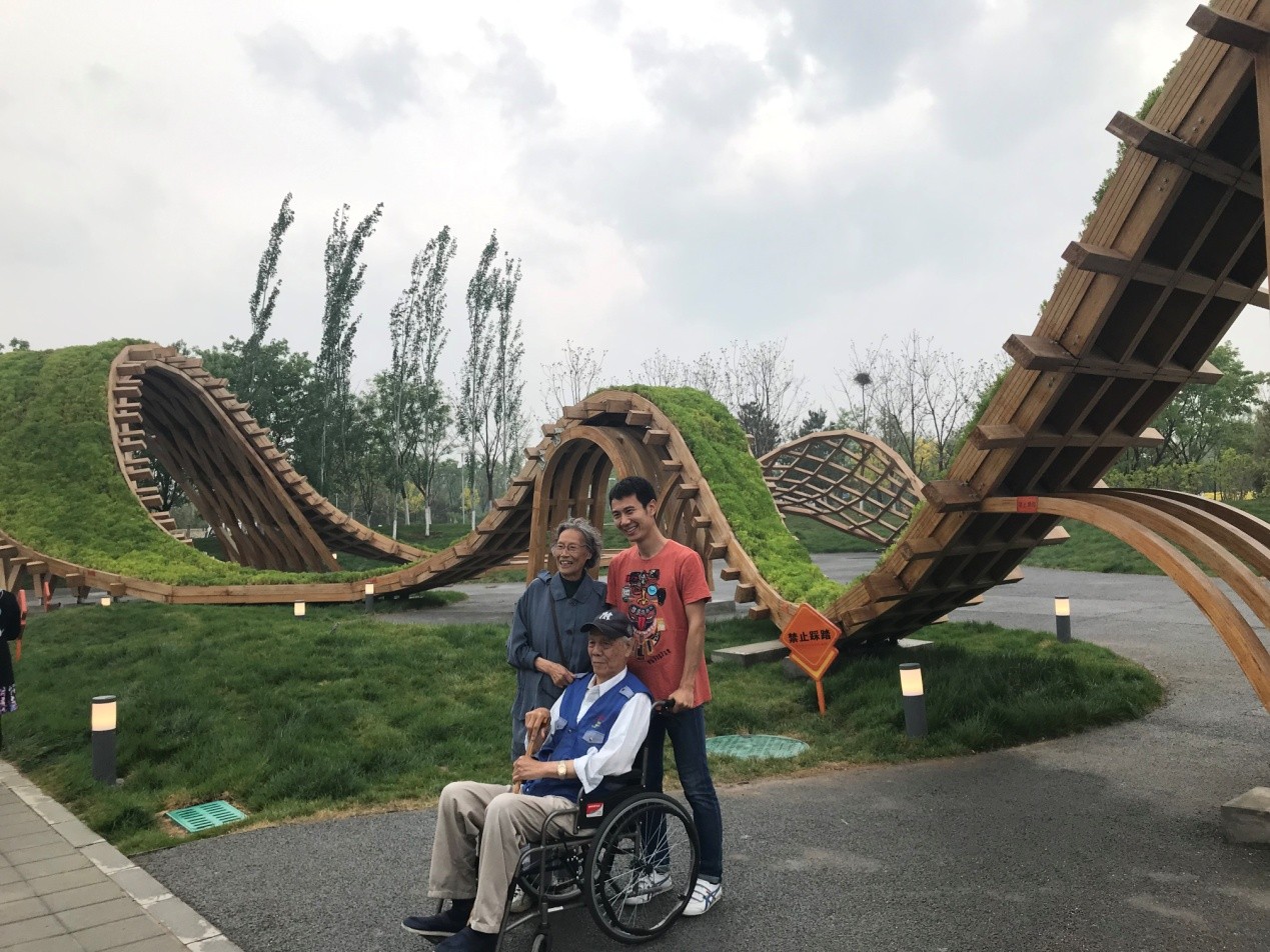 5月12日一早风雨不断,但这丝毫不能阻挡外院教师参观世园会的热情。在所有参加春游的教师中,最引人注目的是92岁的梁立基老师和89岁的王明珠老师夫妇。在两位服务于世园会的外院学生志愿者和青年教师的帮助下,两位老人首先来到了植物馆。植物馆建筑共分三层,一层占地约3000平方米,汇聚了棕榈、多浆植物、食虫植物、苔藓等600多种珍贵热带植物。正当几位青年教师对这些异域物种啧啧赞叹时,王老师像小姑娘一样撅起嘴来,说梁老师早年曾长期在热带工作,热带植物见得太多了,根本没有什么新奇。几位青年教师顺势问道,“那您二位为什么来参加这次参观活动呀?”听到这个问题,瞬间感觉耄耋之年的王老师少女心爆棚,她幸福地说今年5月是他们60年钻石婚纪念年,为了庆祝这个重要的日子,即使梁老行动不太方便,王老师也执意要出来走走。特别是考虑到院里有这么多的老师帮助,他们更加坚定地报了名。“如果不是院里组织,我们俩人也不敢来呀!多亏了院里老师们的帮助!”话里话外,能感到两位老师对院里无微不至的工作表现出赞许和欣慰。