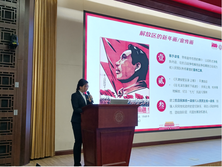 党课上,李老师与党员分享了自己在新中国成立35周年、60周年和70周年庆典上参与群众游行方阵的难忘经历。三次参加重大活动,这不仅反映了李老师在北大成长成熟的心路历程,更映照着我们党和国家在不同时期的不同的面貌、同样的初心。同时,李老师为同学们带来了我们身边的榜样故事,讲述殷洪元老师的故事,让大家看到了96岁的入党积极分子敬党爱党的赤诚之心;讲述仲跻昆先生的故事,让大家看到了老一辈党员一生的爱国之情与初心坚守;讲述外院多语种翻译团队的故事,让大家看到了新一代青年人的使命担当与责任意识。