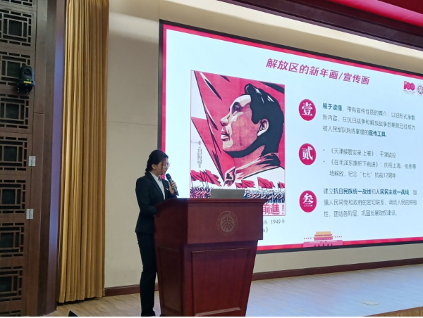 乐动在线第二党支部从新中国成立初期解放区的新年画、宣传画入手,介绍了文艺宣传对鼓励全国人民投身新中国建设的积极作用,再现了团结一心、热火朝天的建设场景,阐明了中国共产党强大的动员力与凝聚力。