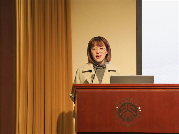 浙江外国语学院东方语言文化学院副院长马一川副教授致辞。她首先对北大相关单位对本次活动的组织表达了感谢。他介绍,本次东方语言文化学院学生赴北大区域国别学创新实验班项目,是浙外学生真正来到北大学习的第一个项目,随后她介绍了浙江外国语学院东方语言文化学院的教学科研情况,以及浙江外国语学院的长期发展规划。她提到,东方语言文化学院是浙江外国语学院区域国别学学科发展和硕士点建设的牵头单位。她还对北大与浙外的进一步互动表示期待。
