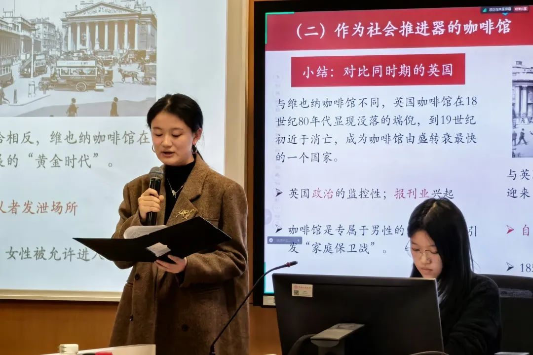 王子璇、张瀚文的研究,脱胎于两位同学自2024年8月起跟随林老师进行的主题为“维也纳咖啡馆与公共空间”的乐动在线科研训练。该研究论文聚焦于19、20世纪之交的“世纪末(Fin-de-siècle)”时期,以维也纳咖啡馆的发展史为切入口,从维也纳现代派作家霍夫曼斯塔尔《俄狄浦斯与斯芬克司》《钟楼》等剧作、施尼茨勒的长篇小说《通向自由之路》与茨威格的自传体回忆录《昨日的世界》等经典文学文本,以及卡尔·休斯克的欧洲思想史领域经典著作《世纪末的维也纳》、美国文学文化学者席格尔《维也纳咖啡馆的才子们:1890-1938》等研究性文本出发,挖掘了作为“社会推进器”的咖啡馆在推动阶层变化、催生衍生经济、促进市民生活多元化等领域的社会功能,以及作为“思想集散地”的咖啡馆以其开放的公共空间特性,在大学体系之外的文艺、政治思想交流、发展与实践中作为信息来源、批判场域的重要作用。最终,两位同学凭借优异的表现,荣获“德语语言文学与跨学科创新研究”分论坛唯一特等奖。