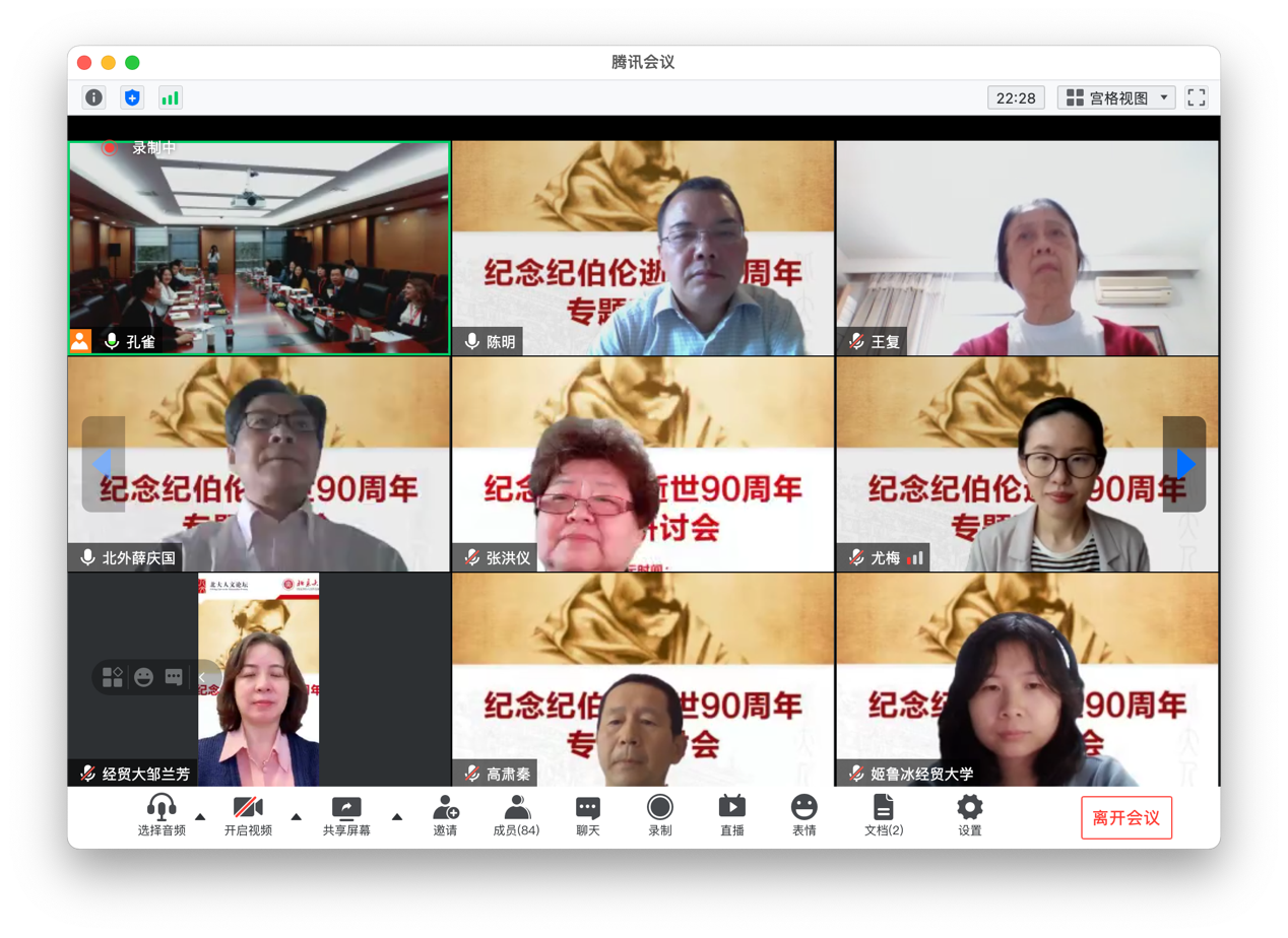 研讨会分四个时段进行,第一时段的主旨发言由中国社会科学院外国文学研究所研究员、中国外国文学学会阿拉伯文学研究分会副会长宗笑飞主持。北京第二外国语学院中东学院张洪仪教授以《求索无止境——纪念纪伯伦》为题,结合自己参观纪伯伦故居和纪念馆的所思所想,认为纪伯伦的文学作品和画作所体现的不仅是爱国情怀,更是对生命的探索,对个体与外界社会复杂关系的哲理性探究。对外经济贸易大学葛铁鹰教授以《纪伯伦早期汉译过程中的红色元素》为题,从纪伯伦作品早期汉译本的时代背景和译者背景出发,强调了纪伯伦在中国的地位和影响力,认为其反抗旧制度和追求进步的思想也为当时寻求光明、播撒革命火种的中国读者提供了精神食粮。天津师范大学甘丽娟教授发表了《纪伯伦在中国的传播与影响的反差与反思研究》的报告,指出中国对纪伯伦文学作品的译介和出版高度热情,但相关学术研究和传记译介及撰写则相对冷清,并提出随着不同时期中国国情变化,关于纪伯伦的译介和研究也相应呈现出不同特点。