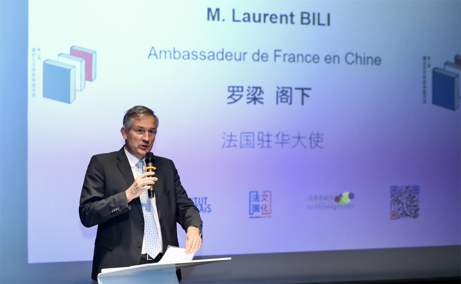 4月15日下午,“2021龚古尔文学奖中国之选”评选结果揭晓仪式在北京法国文化中心举办。“龚古尔文学奖中国之选”的专家组委会成员董强教授、秦海鹰教授和北京外国语大学车琳教授携评审团学生读者出席活动。法国著名作家、龚古尔学院成员皮埃尔·阿苏里和获奖作者穆罕默德·姆博加·萨尔分别从法国巴黎和塞内加尔发来祝贺视频和感言。法国驻华大使罗梁阁下出席并致辞。
