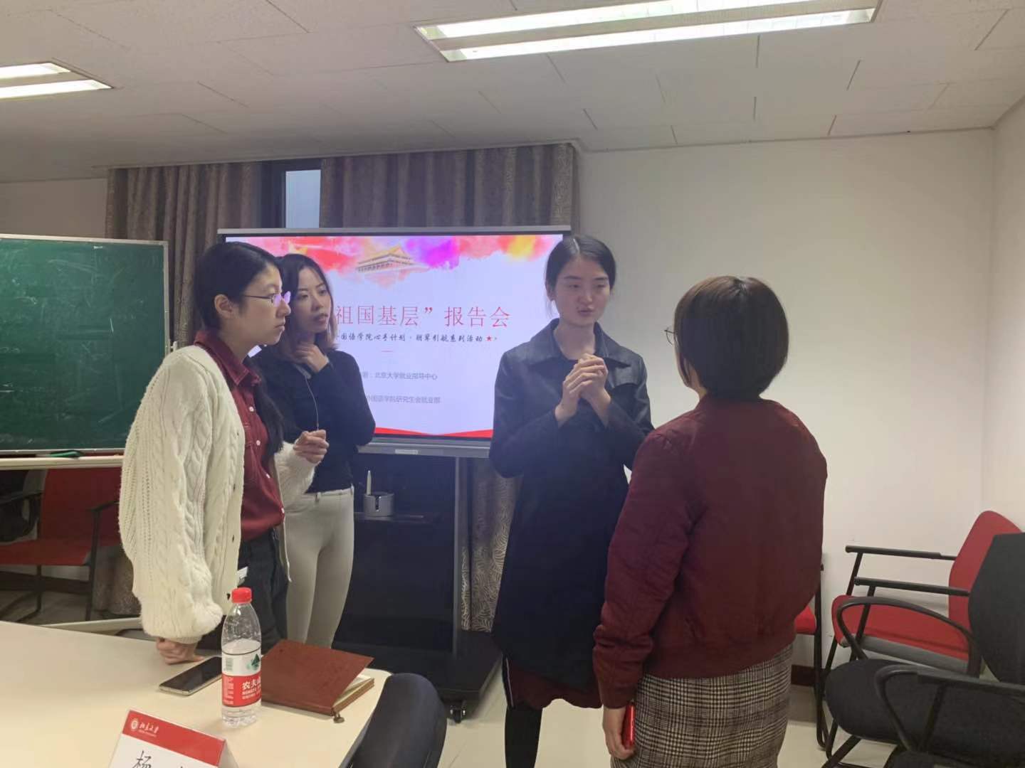 10月12日下午, 乐动在线心手计划•朋辈引航系列活动之“青春告白祖国”——“我在祖国基层”报告会在外院新楼401会议室举行。外国语学院俄语系2017届硕士毕业生,现任重庆市渝中区政府办公室督察二科副科长杨笛,受邀回到母校作基层选调经验报告。此次活动由外国语学院研会就业部王笑然主持,吸引了来自北大多个院系的30余名同学参加活动。外国语学院团委书记卢敏、辅导员丁尧出席了本次活动。