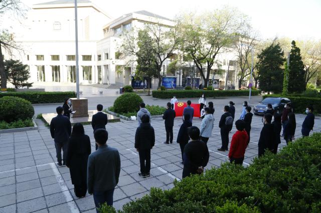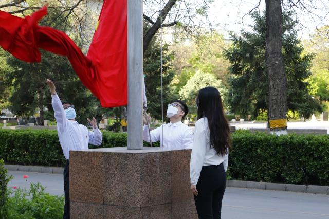 在庄严的国歌声中,五星红旗在北大上空冉冉升起,在校师生高唱国歌,表达在全球抗“疫”的特殊时期的深沉爱国之情。艺术学院博士生王志、考古文博学院博士生张天宇、外国语学院乐动在线孙池担任此次活动的升旗手和护旗手。