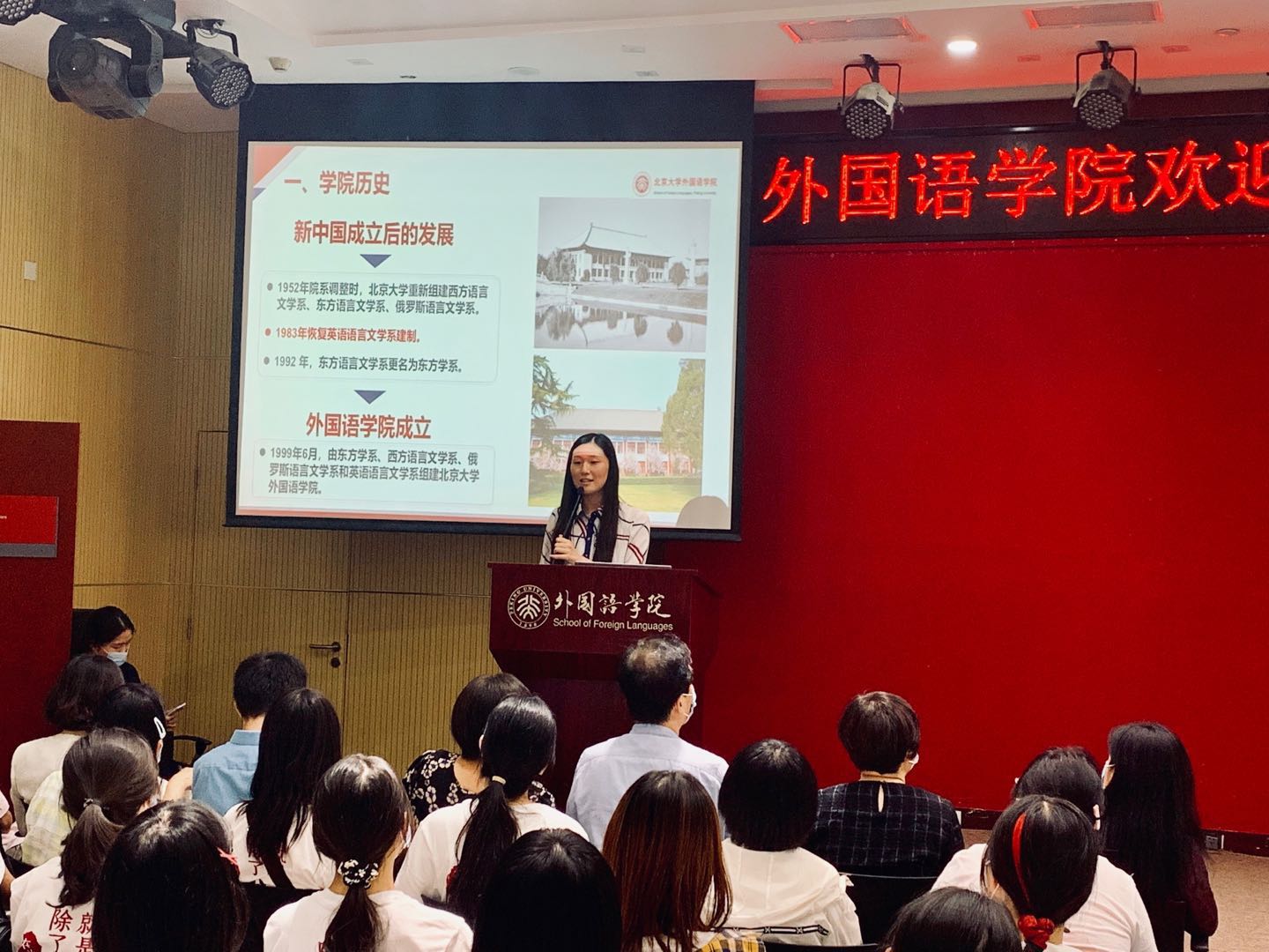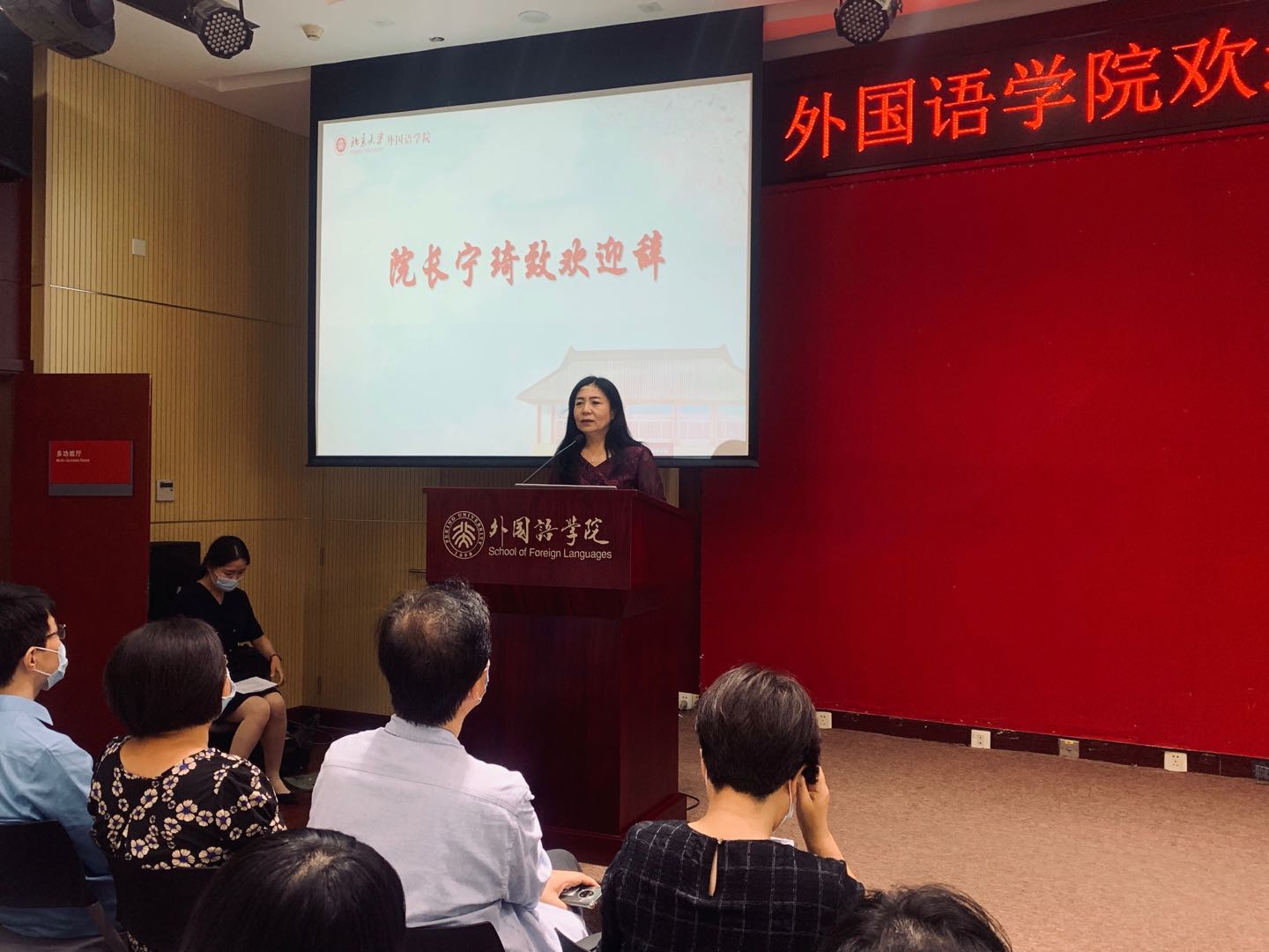宁琦代表外国语学院全体师生员工热烈欢迎各位新生走进燕园、走进外国语学院。宁琦从外院楼宇建筑风格与分布特征展开,引申出学院纵深古今、横通东西、贯通中外的深厚文化理念。她表示,各位新生刚刚经历疫情大考,能做到始终坚持与党和人民共克时艰,同呼吸、共命运,在疫情考验下的高考中,迅速从懵懂未知的少年成长起来,如愿缘聚燕园,这段经历值得一生珍视。宁琦真挚祝福各位新生能在未来的学习和生活中,获得更大的收获与成长,成为有理想、有本领、有担当的新时代青年。同时,宁琦表示学院会倾注最大的努力,为军训归来后的各位新生举办一场难忘的迎新典礼,届时再次热情欢迎各位新生的到来。
