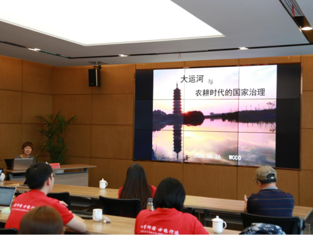 为深入理解大运河在推进“一带一路”建设中的价值,课程团队前往世界运河历史文化城市合作组织(World Historic and Cultural Canal Cities Cooperation Organization,以下简称世界运河组织)调研。世界运河组织正式成立于2009年,旨在以运河为纽带,促进运河城市间经济文化交流,共享发展经验,推动互利合作,目前已有全球各地的92座运河城市加入。26日上午,团队首先来到了位于京杭大运河畔的世界运河城市论坛永久会址——京杭国际会议中心,世界运河组织副主席张福堂与秘书长邓清亲切接见了课程团队,带领师生参观了论坛会址和秘书处。