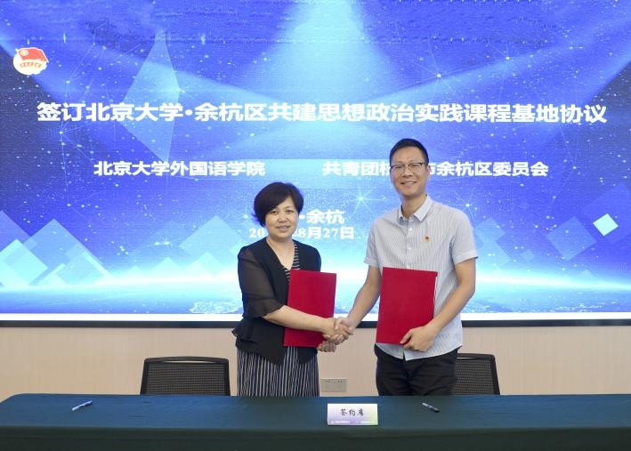8月27日,课程团队一队前往国际人才港,举行了乐动在线与余杭团区委共建思政实践课程基地签约仪式,深入了解了余杭区的整体发展情况及相关政策,为接下来进一步学习做好知识储备。实践基地的签约也意味着日后余杭和北大外院的联系更加紧密:之后,北大学子便能以思政实践课的方式,在见证余杭进步的伟大历程的同时,扎根祖国大地,开阔广袤视野。余杭也将成为北大学子们挑战自我、放飞梦想的理想平台。