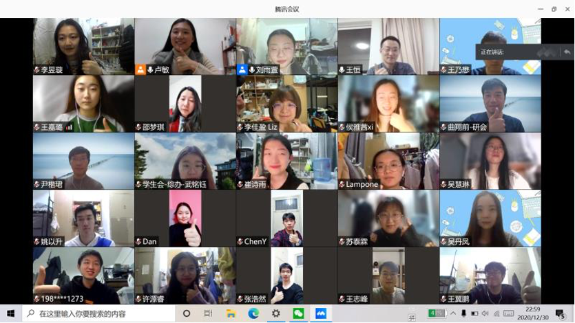 2020年12月31日晚,乐动在线顺利举行了2020年团学工作交流述职会。北大外院团委、学生会、研究生会、新媒体中心四个学生组织骨干成员及院党委副书记王恒,团委书记卢敏,团委副书记于丹、李佳盈共55人参加会议。此外,因北京市疫情防控需要,此次述职大会以线上会议的形式展开。本次会议由团委学生副书记刘雨萱主持。