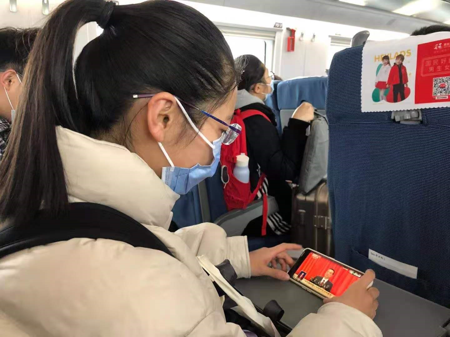 外国语学院学生在返校途中参加线上学习