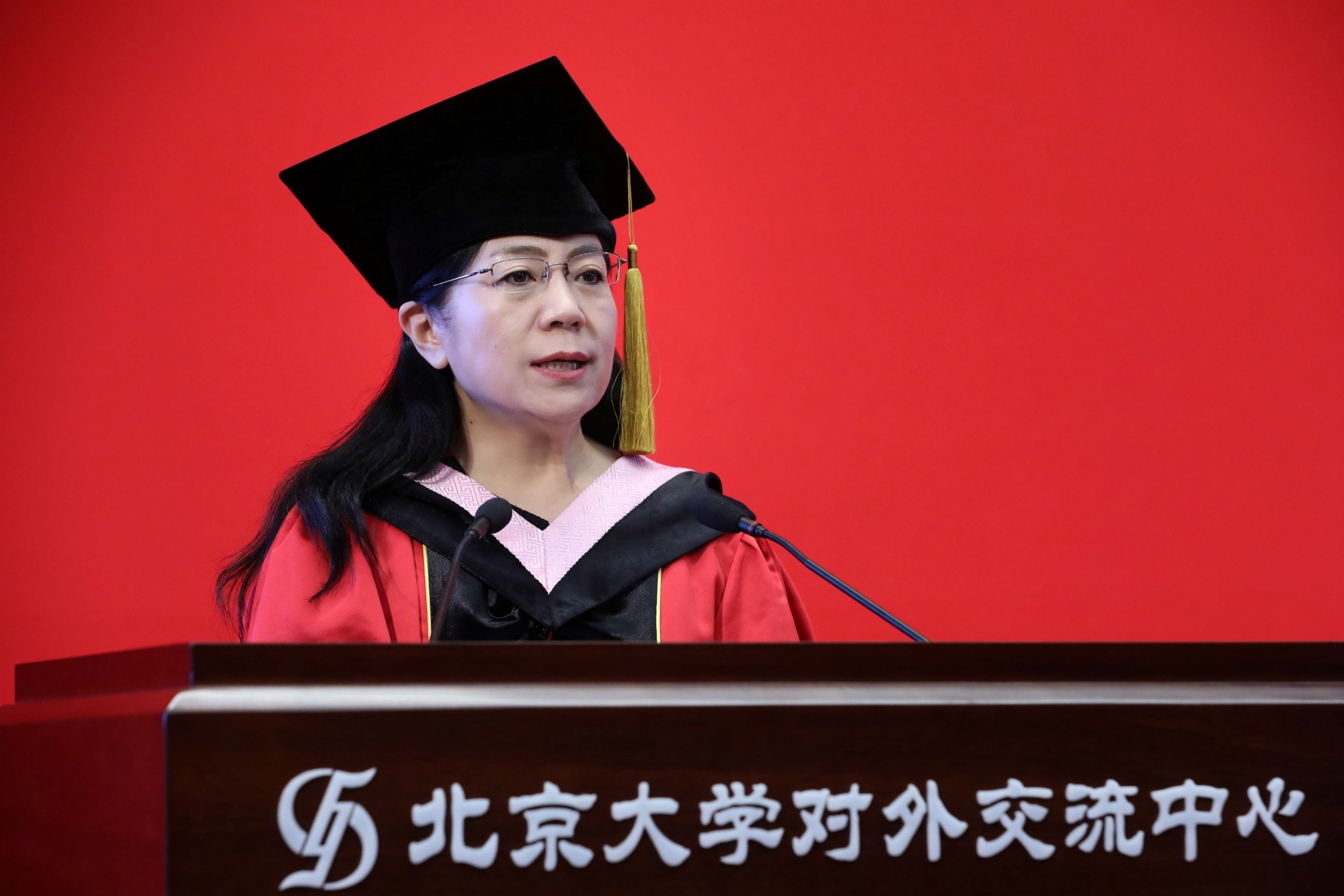 在热烈的掌声中,院长宁琦为毕业生同学们送上深情寄语。她回忆了与同学们一同度过的美好时光,同学们青春的活力、潜能与担当让她倍加感动,深受鼓舞。宁琦提到,今年是中国共产党的百岁生日,在新百年的起点上,更需要青年人以最大的热情拥抱这个伟大的时代。她用学院赵振江教授、申丹教授的事迹,勉励同学们树立“功成不必在我,功成必定有我”的激昂壮志,表达了对同学们到更广袤的天地中学习成长、到祖国最需要的地方去追梦圆梦、投身人类命运共同体建设的无限支持。宁琦鼓励同学们珍惜青春年华,保持对知识和真理的渴求,树立为祖国和人民奉献的远大志向,读懂精神传统,读懂使命责任,读懂自己,坚定信仰,不负青春韶华。