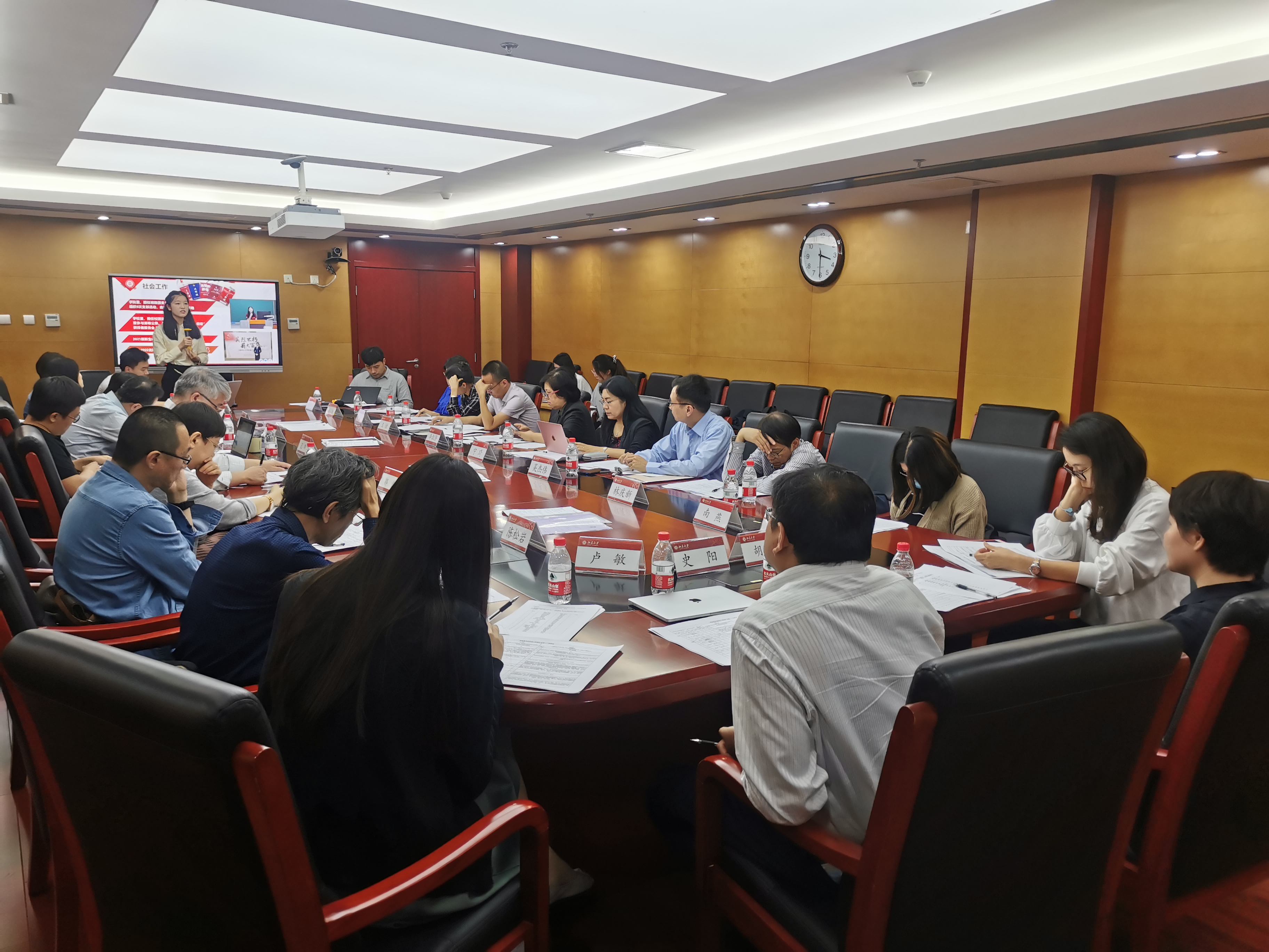 9月22日中午,外国语学院 2020-2021学年国家奖学金、五四奖学金、学术创新奖评审会,在外院新楼B134会议室召开。院长宁琦,院党委书记李淑静,各系(所、中心)学生工作指导委员会委员,团委书记卢敏及学生代表出席会议。会议由院党委副书记王恒主持。王恒介绍了本次会议的议程,并就国家奖学金、五四奖学金,以及学术创新奖的初评程序做了具体说明。