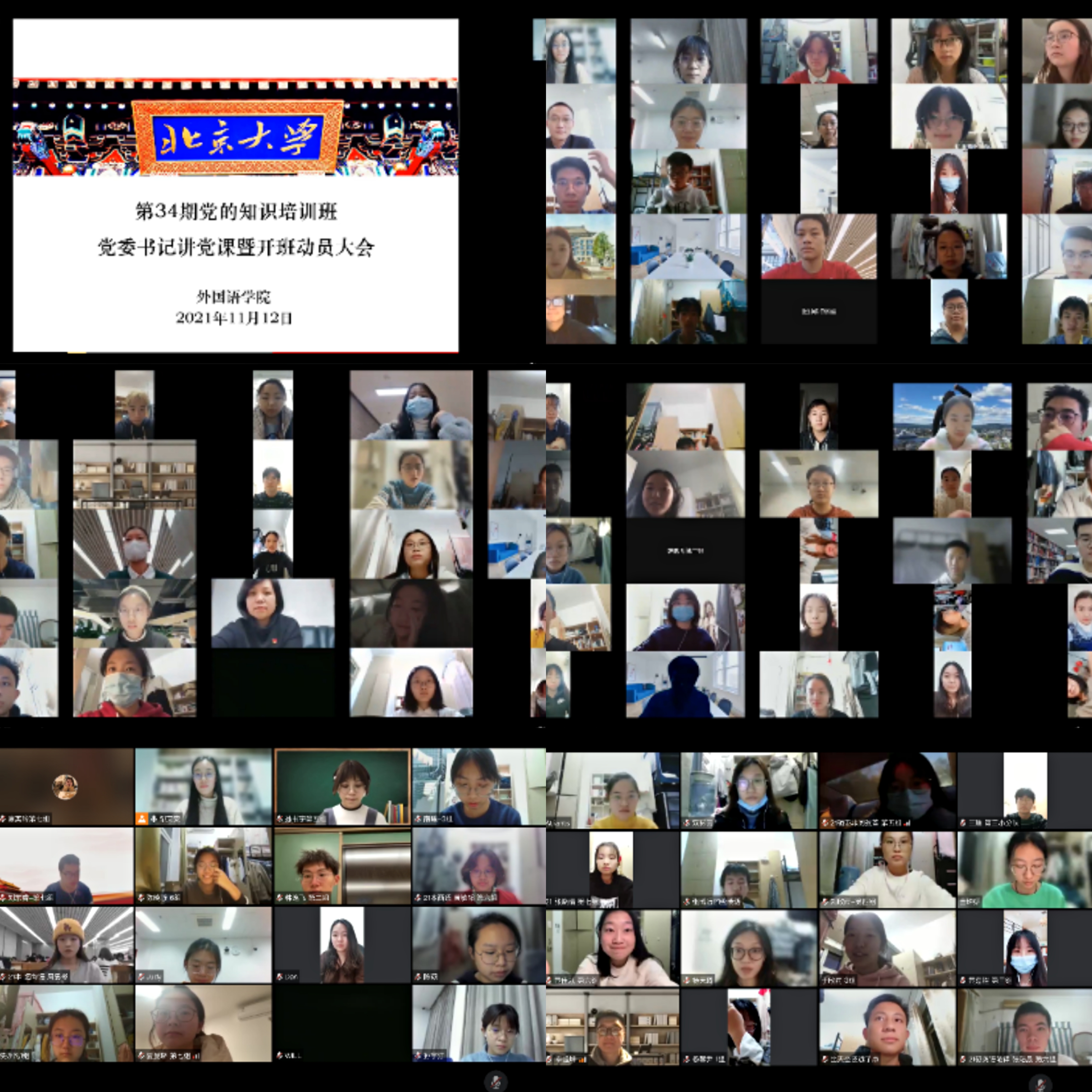2021年11月12日下午,外国语学院举办第34期党的知识培训班开班动员会暨党委书记讲党课活动,考虑到疫情防控需要,本次活动以线上腾讯会议的形式召开。本次活动由学院党委书记李淑静担任主讲,党委副书记王恒、团委书记伍昕钰、团委常务副书记于丹出席会议,第34期党的知识培训班领队辅导员邹艾安担任主持。培训班一百七十余名学员齐聚云上,认真听讲,积极互动,以端正的态度和饱满的精神正式开启初党学习之旅。