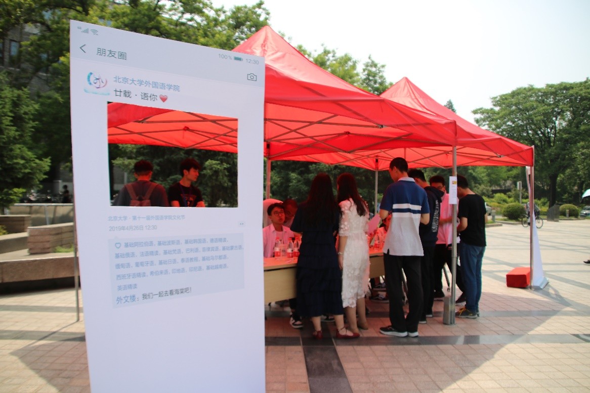 2019年5月10日,“廿载·语你”第十一届乐动在线文化节“情深深,语萌萌”文化日在北京大学百周年纪念讲堂广场成功举办。文化日由乐动在线学生会主办。来自外院的同学们通过文艺汇演、搭建照片墙、举办美食汇、答题赢周边等多样形式庆祝文化日,吸引了来自北京大学各个院系的师生积极参与活动。